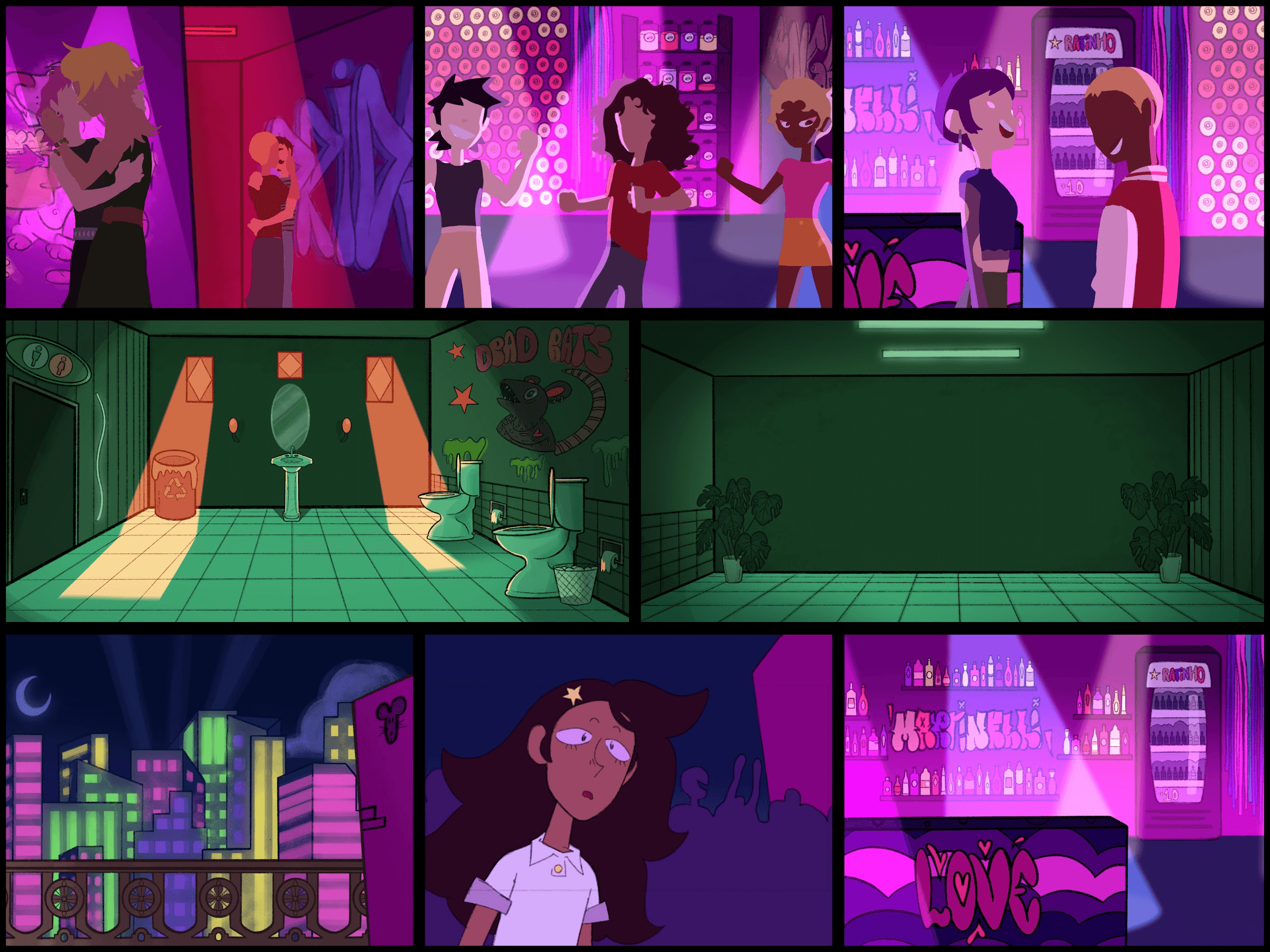 ME INSPIREI Nas festas que acontecem no prédio Martinelli COM suas cores vibrantes, além de filmes "coming of age". queria que a estética do curta lembrasse essas histórias adolescentes de primeiras experiências.